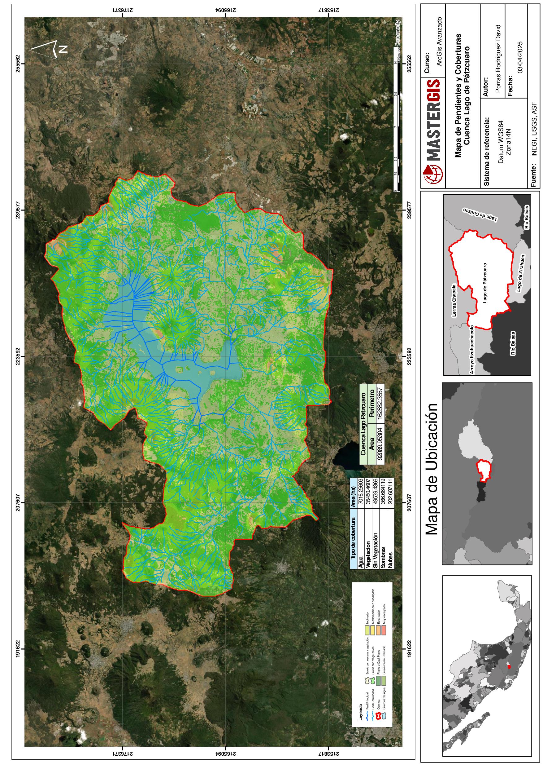 Además, conocer las pendientes en áreas donde aún existe vegetación sana ayuda a identificar zonas vulnerables a procesos erosivos, lo que puede orientar estrategias de conservación y reforestación. En este sentido, el estudio de la cuenca del Lago de Pátzcuaro no solo ofrece una oportunidad para aplicar conocimientos técnicos, sino que también tiene un fuerte componente socioambiental enfocado en la recuperación y manejo sustentable del territorio.