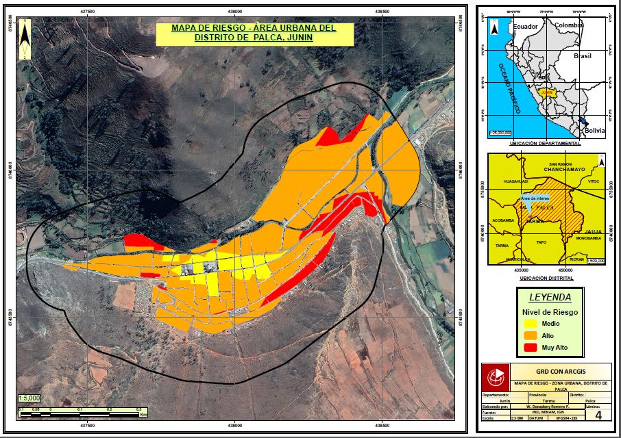 El presente proyecto Análisis de Riesgo por Deslizamiento en el área urbana del distrito de Palca, de la provincia de Tarma, del departamento de Junín, expone escenario de riesgo en zonas desde el nivel de riesgo Medio hasta el nivel de riesgo Muy Alto, en gran parte es debido al incremento de la población y la expansión urbano no planificado, que asienta las nuevas construcciones en áreas con pendientes considerables, materiales inadecuados y en algunos casos sin la intervención de un especialista, componentes que condicionan la materialización del riesgo; en el análisis del proyecto se tiene como factor desencadenante para el peligro de deslizamiento la precipitación anómala, para ello se considera la susceptibilidad de movimiento en masa como factor condicionante (el pendiente, geomorfología y la geología). Dicho escenario involucra a una población mayor a 2200 habitantes.
