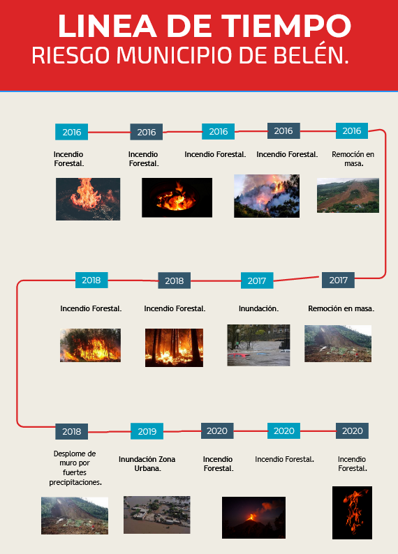 Para la elaboración del plan de gestión de riesgos y la priorización de los escenarios de riesgo del municipio, se tomó como base los eventos más significativos ocurridos en los últimos cinco años tanto en la zona urbana como en la rural del municipio de Belén.