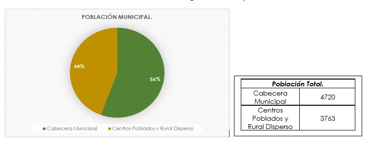 Por otro lado, en la zona rural se tiene el 44% de la población total comprendido en las nueve veredas y sus determinados sectores, siendo la vereda el Bosque la que tiene el total de la población debido a su extensión.