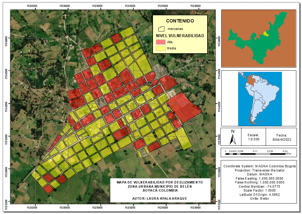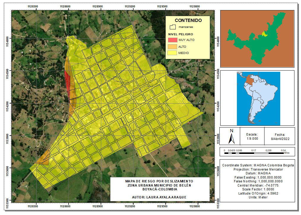 Para determinar el nivel de peligro de la zona urbana del municipio de Belén se evaluaron factores como: la geología, geomorfología y la pendiente, además de relacionarlos según su peso de priorización los cuales se identificaron gracias a la matriz SAATY y el programa ArcMap.