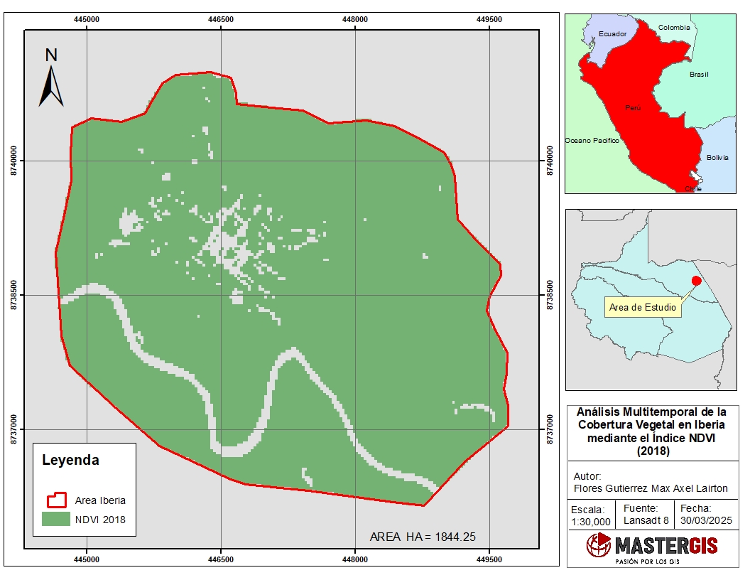 Iberia, ubicada en la región de Madre de Dios, Perú, es una localidad de creciente importancia dentro del ámbito ambiental y de planificación territorial. Su economía se basa principalmente en actividades agropecuarias, extracción de madera y comercio, pero en los últimos años ha enfrentado desafíos significativos debido a la expansión urbana desordenada y la deforestación. La presión sobre los ecosistemas naturales, impulsada por la conversión de bosques en tierras agrícolas y el avance de asentamientos humanos, ha generado una notable reducción en la cobertura vegetal, afectando la provisión de servicios ecosistémicos y aumentando la vulnerabilidad a eventos climáticos extremos.