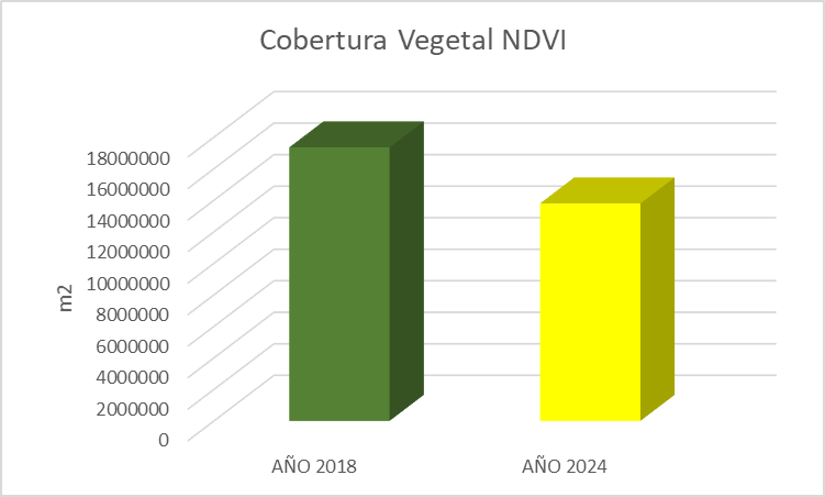se observa que el área con cobertura vegetal en 2024 era de 13,797,000 m²