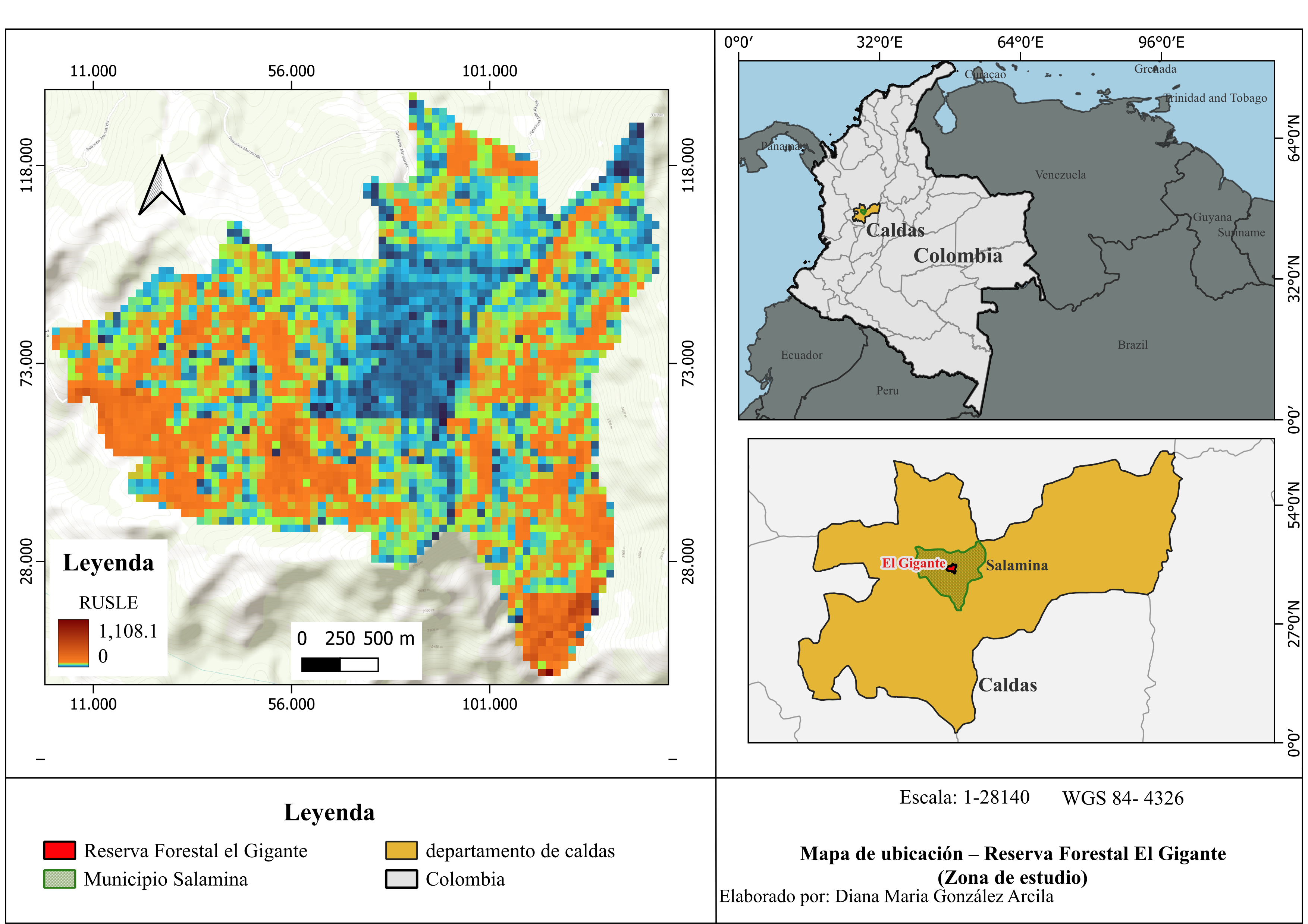 En Colombia, el 40 % del territorio presenta algún grado de degradación por erosión, lo que equivale a más de 45 millones de hectáreas. Una situación agravada por el uso inadecuado de más de 30 millones de hectáreas (siac). El departamento de Caldas se encuentra entre los más afectados, con más del 55 % de su superficie impactada por procesos erosivos ( Betancur, 2017; El tiempo, 2024). Esta condición no solo reduce la productividad agropecuaria, sino que incrementa el riesgo de desastres como inundaciones y deslizamientos(FAO, 2019). En este contexto, evaluar la pérdida de suelo en áreas de alto valor ecológico, resulta fundamental para orientar acciones de conservación.