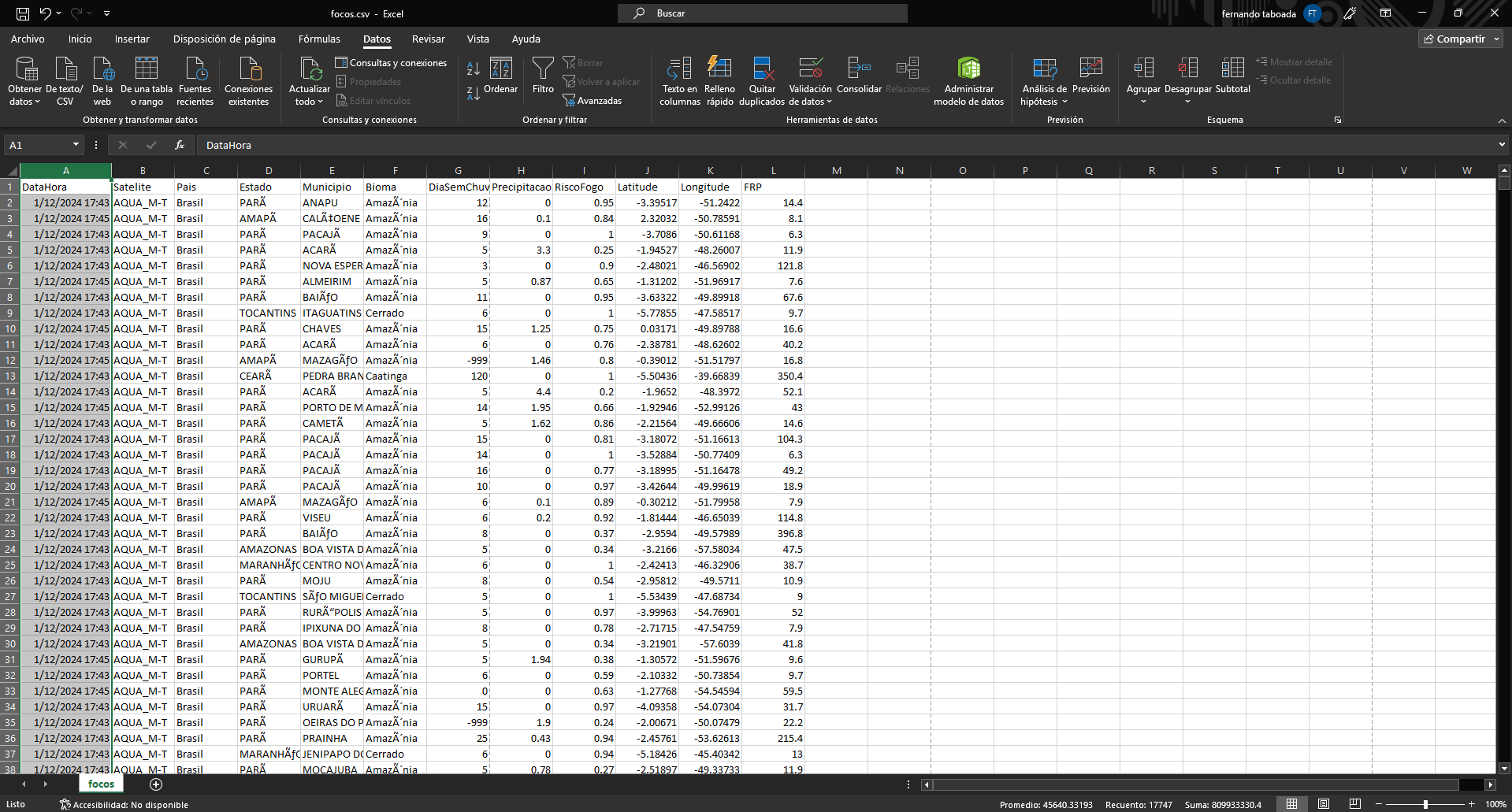 Los incendios forestales representan una de las problemáticas ambientales más críticas en Sudamérica, afectando la biodiversidad, los servicios ecosistémicos, y la salud de las comunidades locales. En los últimos años, el incremento de focos de calor debido a actividades humanas y cambios climáticos ha intensificado la presión sobre los ecosistemas. En este contexto, el monitoreo y análisis de los focos de calor se han convertido en herramientas clave para la gestión ambiental y la toma de decisiones en tiempo real.