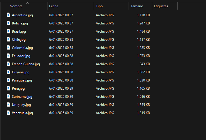 Se generaron un total de 13 mapas temáticos correspondientes a los países de Sudamérica, mostrando la distribución espacial de los focos de calor registrados durante el mes de diciembre de 2024. Se estableció un umbral de 350 casos como condición de alerta, considerando como críticos los países con un número superior a este valor. Los resultados evidencian que Brasil presentó la mayor cantidad de focos de calor con un total de 12,075 casos, superando ampliamente el umbral de alerta. En contraste, Surinam registró la menor cantidad con 14 casos, permaneciendo muy por debajo del umbral establecido. Estos mapas permiten una visualización clara y comparativa de la incidencia de focos de calor en la región, facilitando la toma de decisiones en gestión ambiental y prevención de incendios.
