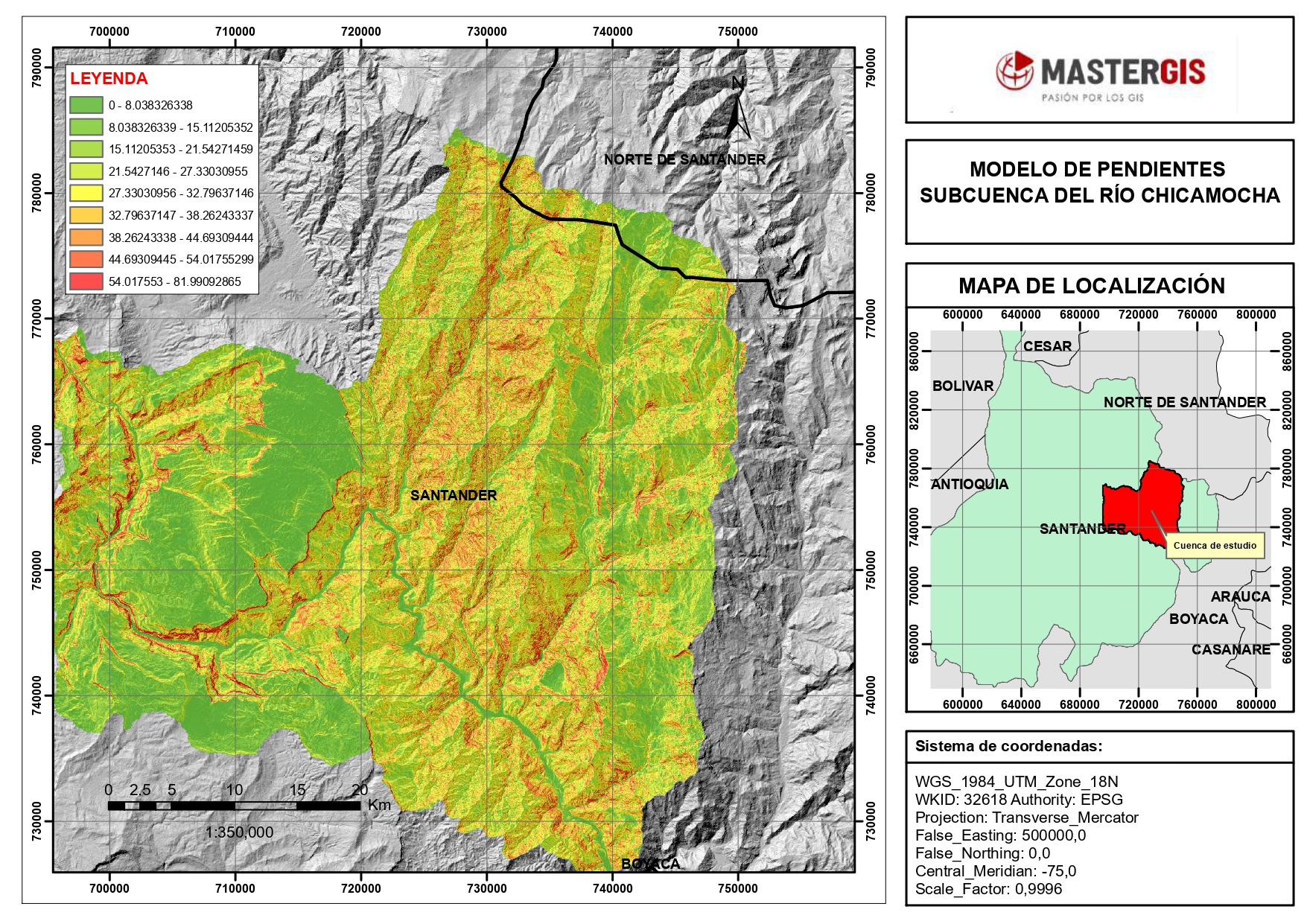 Este estudio se centra en la subcuenca del río Chicamocha, abordando aspectos clave como la caracterización de pendientes, el análisis de la red de drenaje principal, la identificación de coberturas vegetales y otros elementos geográficos y ambientales relevantes. El objetivo principal es generar una visión detallada y actualizada de las condiciones físicas y ecológicas de la subcuenca, utilizando herramientas de Sistemas de Información Geográfica (SIG) y datos de teledetección.