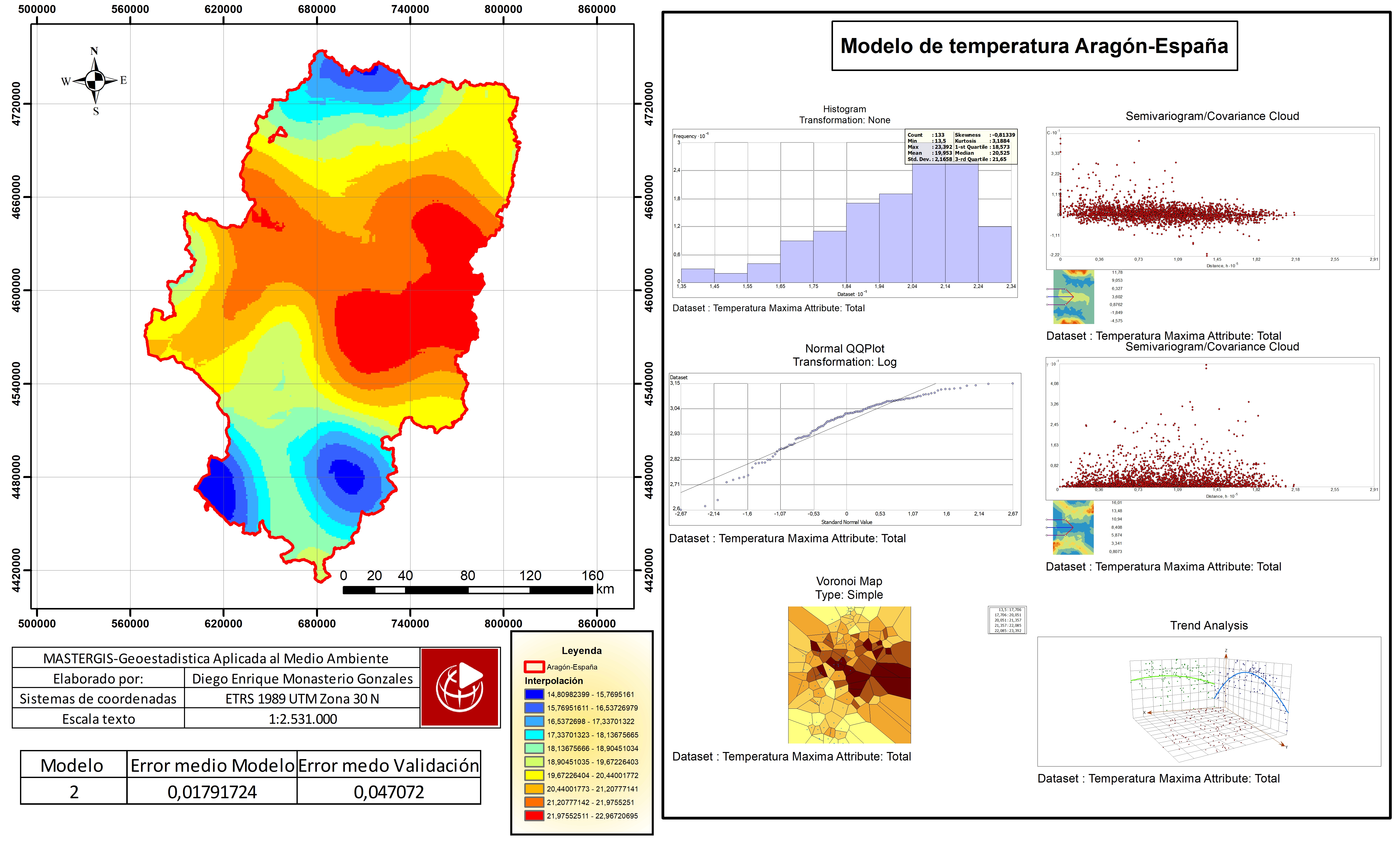 Para la interpolación de la temperatura máxima de Aragón España se seleccionó el modelo 2 debido a que el error es más cercano a cero.