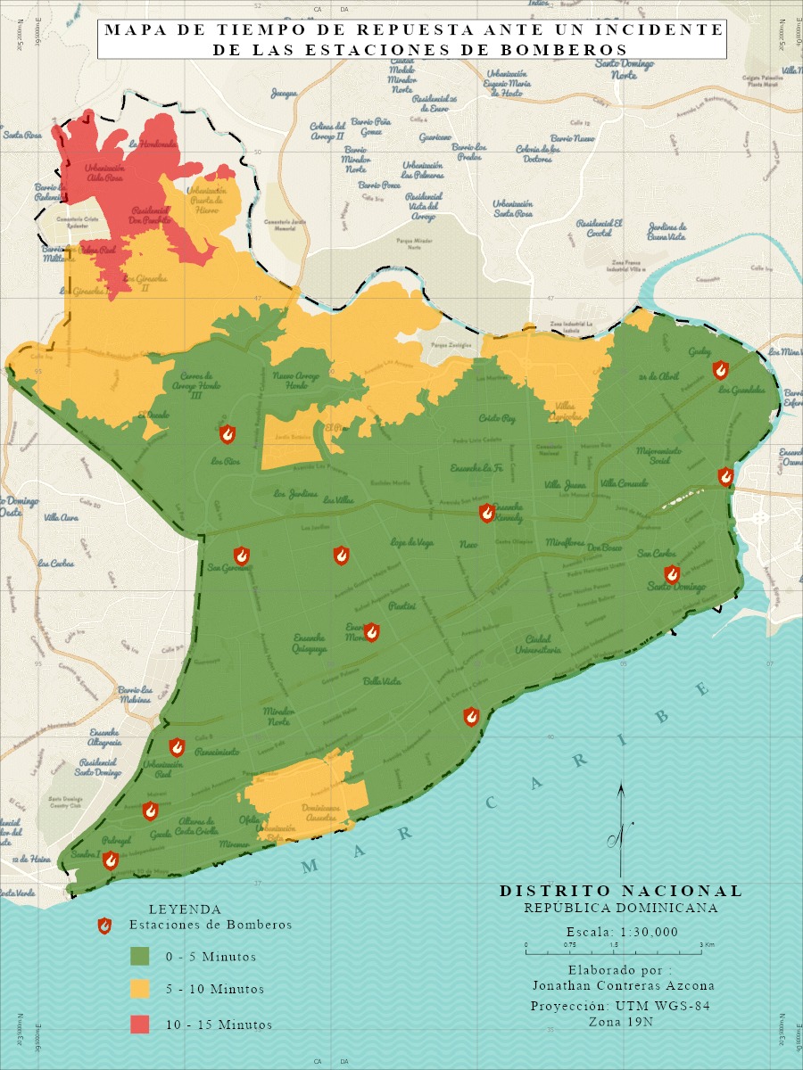 Las estaciones de bomberos del Distrito Nacional presentan una deficiente distribución de sus estaciones, ya que con el tiempo la zona norte del Distrito a tenido un mayor desarrollo por lo que algunas estaciones son redundantes en su ubicación. Sumándole esto que existe una gran congestion vehicular durante todo el día que afecta el tiempo de respuesta de la institución, por lo que es primordial tener una buena distribución de sus estaciones, esta distribución no solo ayudaría a mejorar la zona del Distrito, también las zonas aledañas a este.
