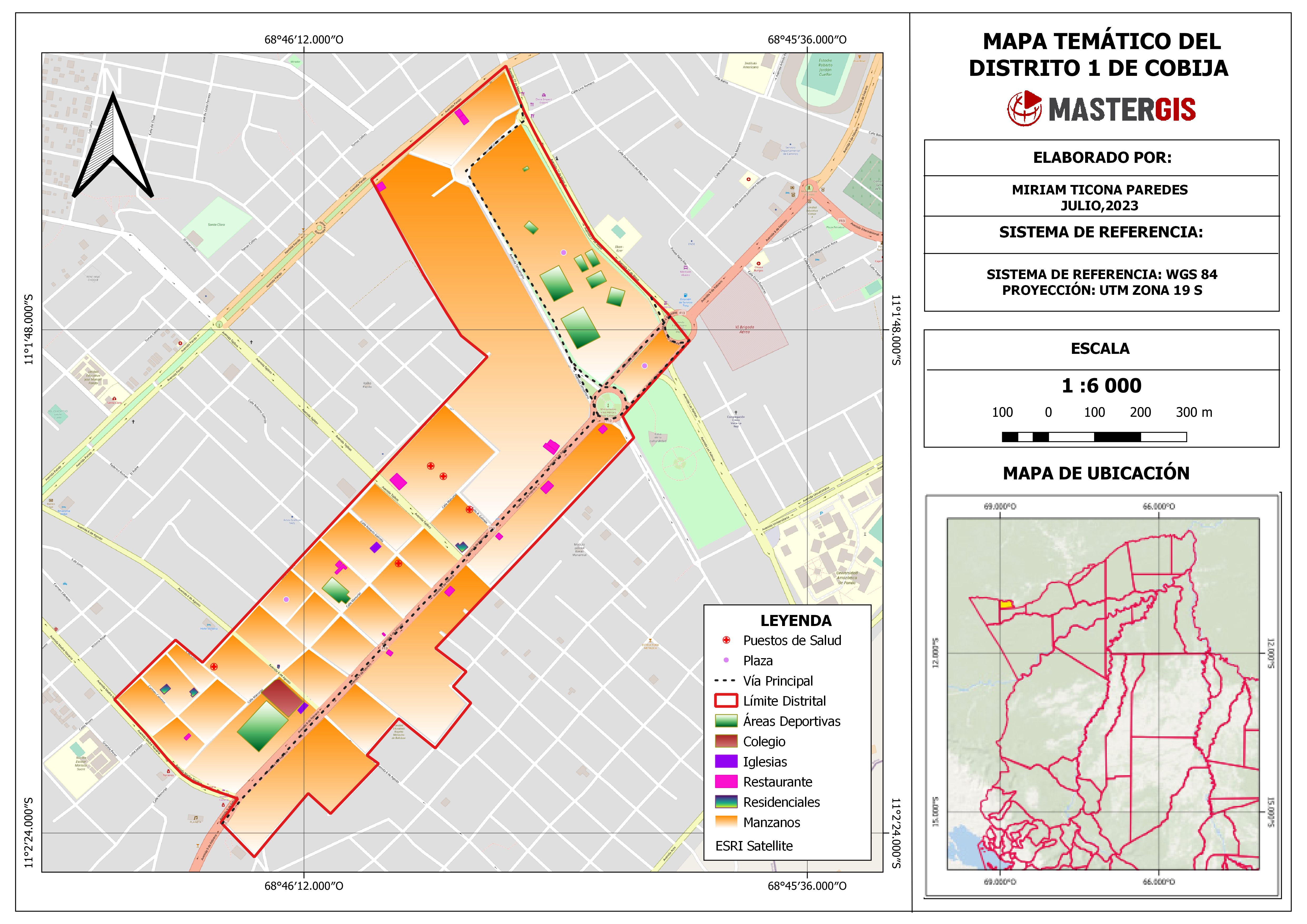 Cobija se encuentra a una altitud de 228 msnm, tiene un clima tropical y lluvioso, y es la capital departamental menos poblada de Bolivia. En ese sentido el presente proyecto esta enfocado a la digitalización de los principales equipamientos que existe en esta ciudad en el distrito 1.