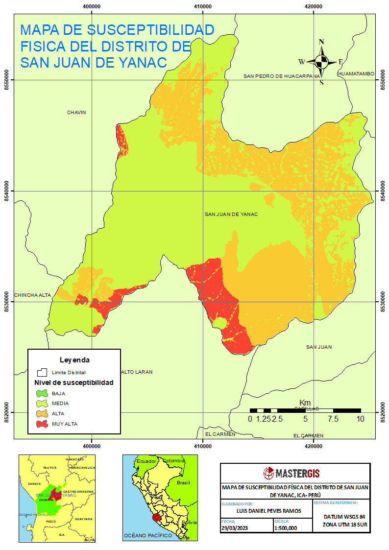 Mapa de susceptibilidad física del distrito de San Juan de Yanac, Ica - Perú