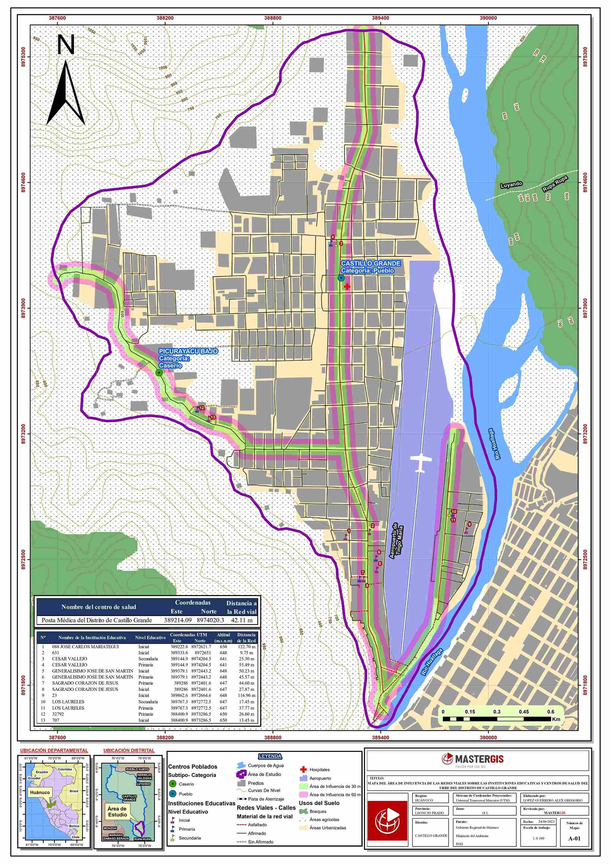 En el contexto específico de la urbe del distrito de Castillo Grande, la influencia de las redes viales y las instituciones educativas puede ser analizada en términos de su impacto en el crecimiento económico, el acceso a servicios básicos, el desarrollo social y la calidad de vida de sus habitantes. Además, estos factores pueden interactuar entre sí, ya que una red vial bien conectada puede facilitar el acceso a las instituciones educativas, lo que a su vez puede contribuir a un mayor desarrollo económico y social.