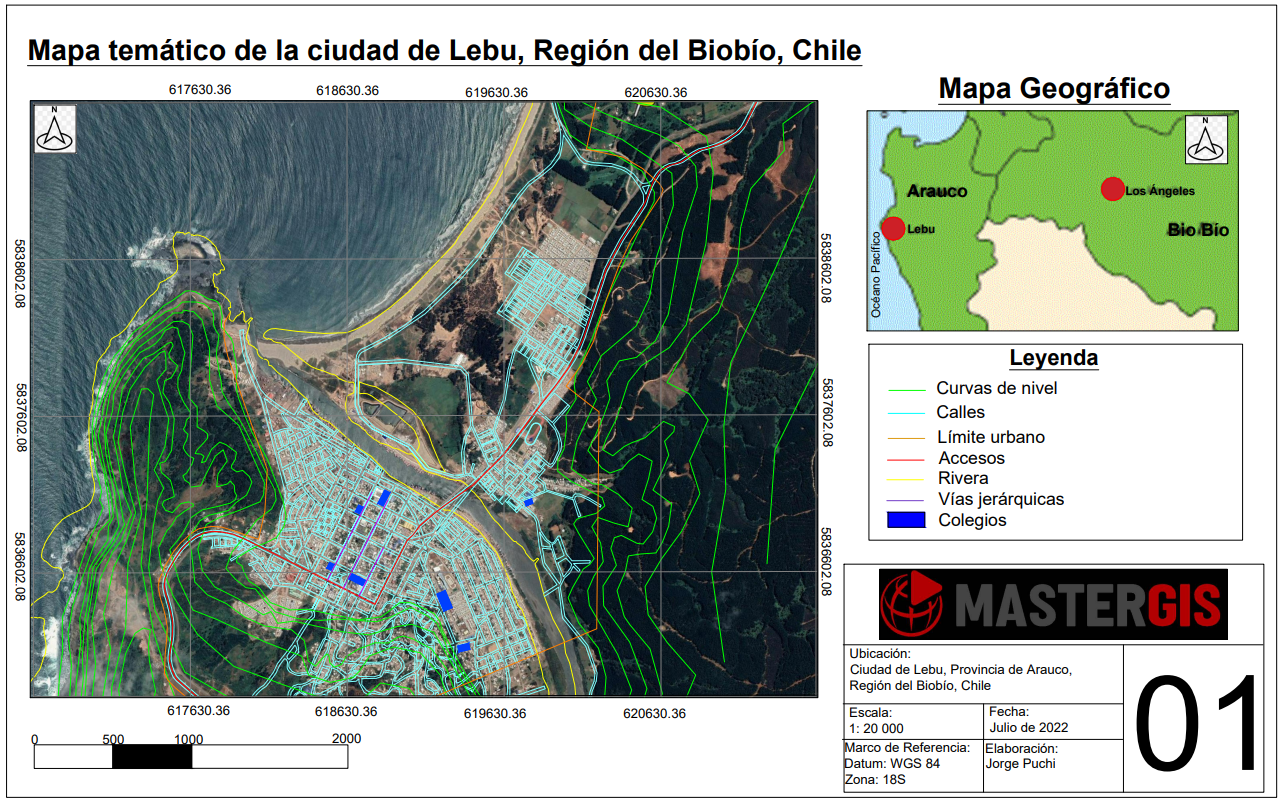 En este proyecto se realizará un mapa temático de la ciudad de Lebu, el cual permitirá representar principalmente la topografía de las inmediaciones de dicha ciudad, las principales vías, la ribera del río Biobío, los colegios de la zona, entre otros. Para ello se hizo uso de AutoCad y de los conocimientos entregados durante el curso de dicho software.